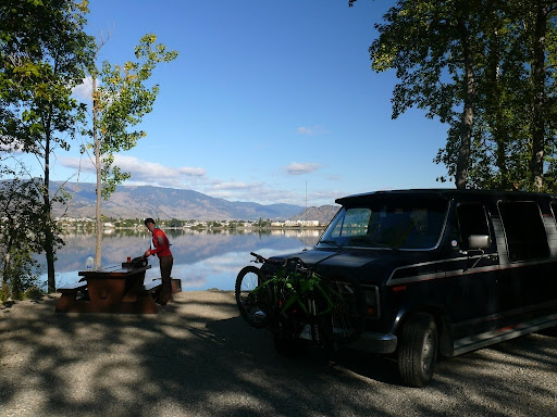 Und so gönnten wir auch mal zwei Flaschen Wein. Die zweite Nacht verbrachten wir im Haynes Point Provinizial Park am Lake Osoyoos. Wie bereits am Vortag, direkter Seezugang.