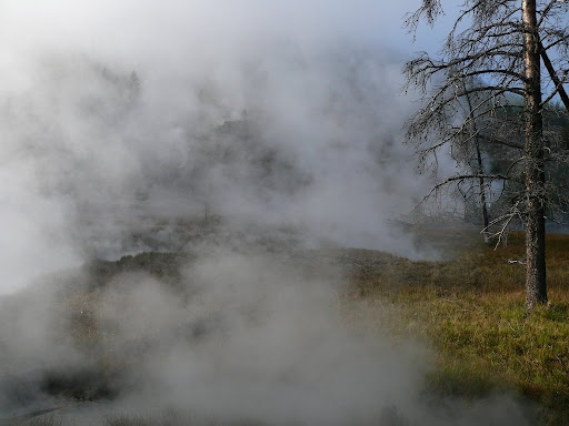 Von Norris sind wir heute in Richtung Old Faithful gefahren. Vor Madison machten wir noch einen Halt bei den Artists Paint Pots, welche durch den Nebel mystisch eingehüllt waren.