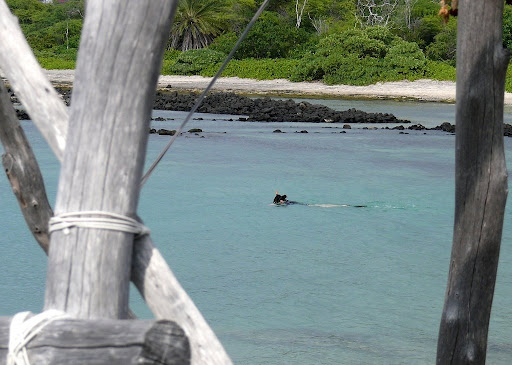Wenn man all die Coupon-Hefte auf den Inseln intensiv studiert, kann man schon das eine oder andere Schnäppchen machen. Wir haben für zwei Ausrüstungen (Maske, Schnorchel und Flossen) gerade mal 9 Dollar für eine ganze Woche bezahlt. Damit wir uns nicht den Rücken verbrennen, haben wir uns auch noch lange Wasser-Shirts besorgt. Nach einer kurzen Besichtigung von Kona gingen wir an den Kahaluu Beach, wo auch eine Schnorchel-Anfängerin zu Recht kommen sollte.