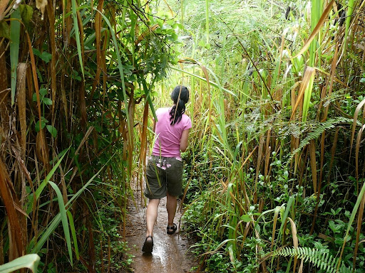 Wieder mal Regen während der ganzen Nacht und ausnahmsweise auch mal noch am Morgen. So sind wir erst gegen Mittag aufgebrochen. Bei Puhi haben wir einen versteckten Wasserfall aufgesucht. Erst ging es durch meterhohe Stauden bis zum moskitoreichen Wasserfall, dies hat uns aber nicht daran gehindert eine Weile dort zu verbringen.