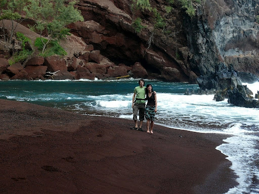 Denn in Hana selbst gibt es noch einen versteckten roten Sandstrand zu erkunden. Durch das Rot des Sandes und das umgebende Grün, kam uns das Blau des Meeres am Kaihalulu Strand noch viel intensiver vor.