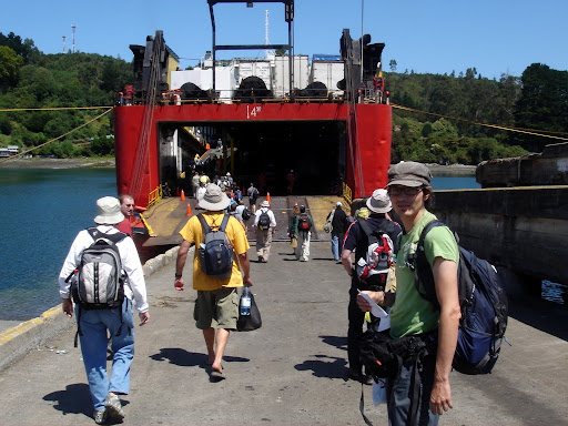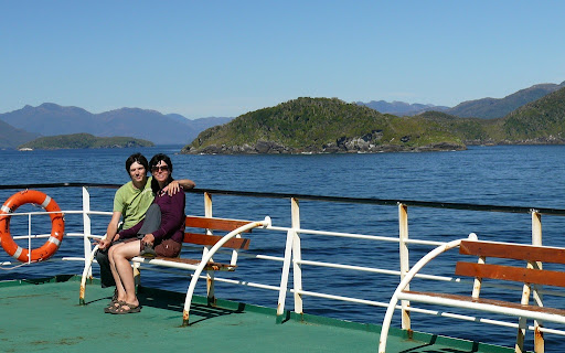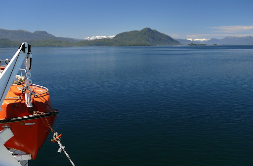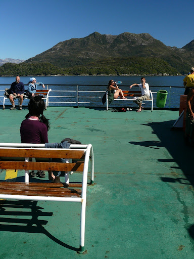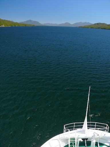 Nach dem Auslaufen haben wir erstmal die Aussicht auf dem sonnigen Deck genossen. Als erstes fuhren wir an der Insel Chiloe und den unzählig kleinen anderen Inseln vorbei.