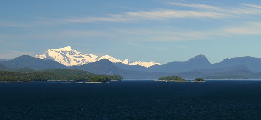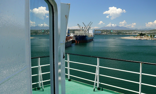 Wir haben diesbezüglich Glück gehabt, keine Schnarcher oder sonstige komischen Käuze – „grins“. Bad war auch gleich in unserer Kabine und natürlich hatten wir auch Fensterausblick. Pünktlich um 16.00 h sind wir dann bei strahlendem Wetter in Richtung Süden aus dem Hafen Puerto Montt ausgelaufen. Im Hintergrund waren der Vulkan Osorno und der hohe Berg Monte Tronador zu ersehen.