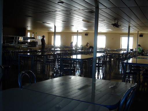 Am Abend dann unser erstes Essen an Bord. Kantinenstil, aber nicht mal so schlecht.