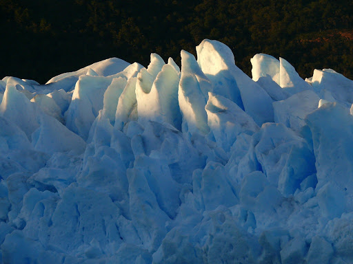 Als wir dann morgens so gegen 06.00 h früh unser nasses Zelt in den Kofferraum warfen, regnete es nicht mehr und wir konnten immerhin die Sterne sehen. Werden wir doch Glück haben? Das gefährliche an unserer Fahrt in der Morgendämmerung waren die herumflitzenden Hasen. Und wie es sich herausstellte, hatten wir Glück mit dem Wetter. Kurz nach 07.30 h wurden die Bergspitzen langsam rot und wir konnten dann zusehen, wie der Perito Moreno Gletscher nach und nach in Licht getaucht wurde.