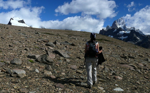 Heute wollten wir dann dem Cerro Torre nochmals eine Chance geben. So machten wir die Eintagestour zum Lomo del Pliegue Tumbado hinauf. Über Wiesen, durch Wald und schlussendlich durch Geröll, sind wir nach gut 1’000 Höhenmetern auf dem Gipfel des Lomo del Pliegue Tumbado gestanden.